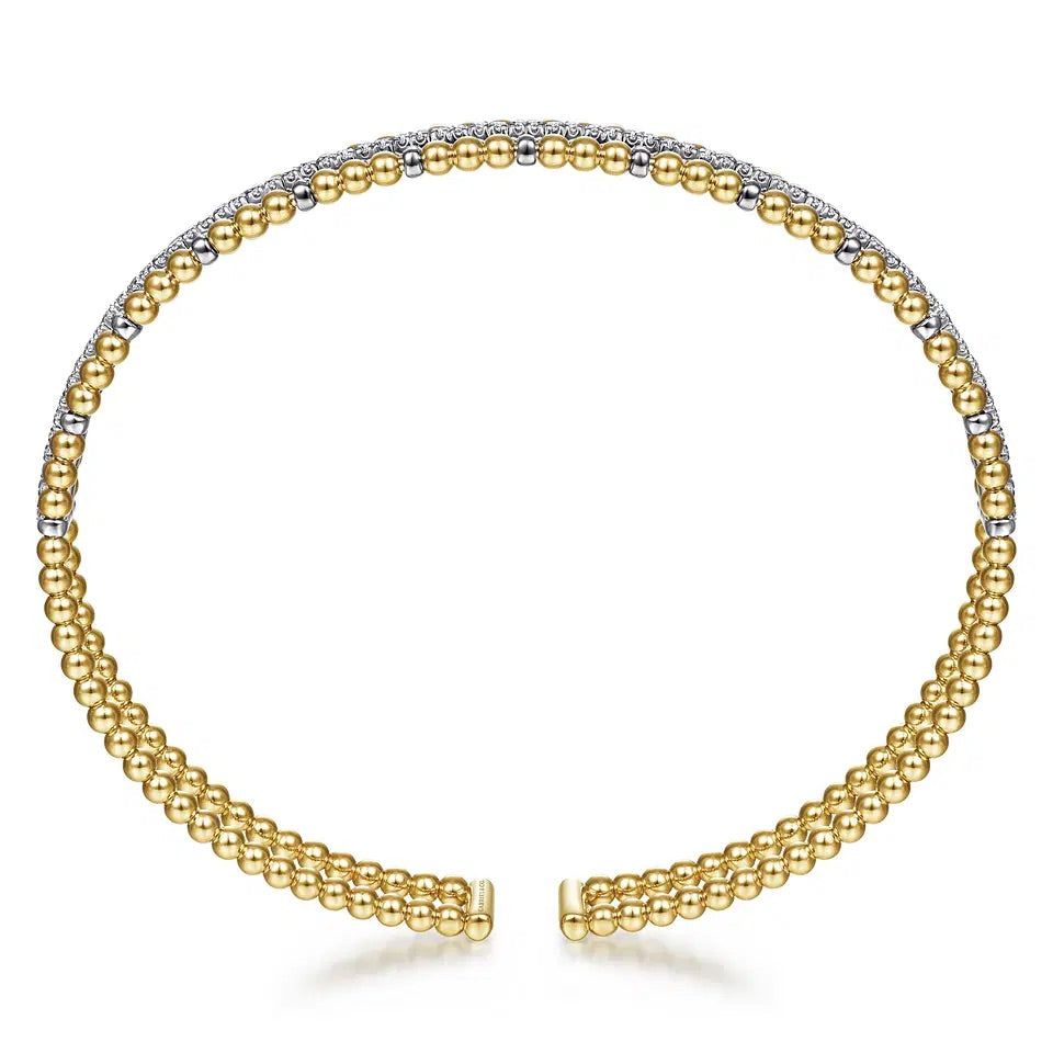 14K Yellow and White Gold Bujukan Diamond Cuff Bangle Bracelet