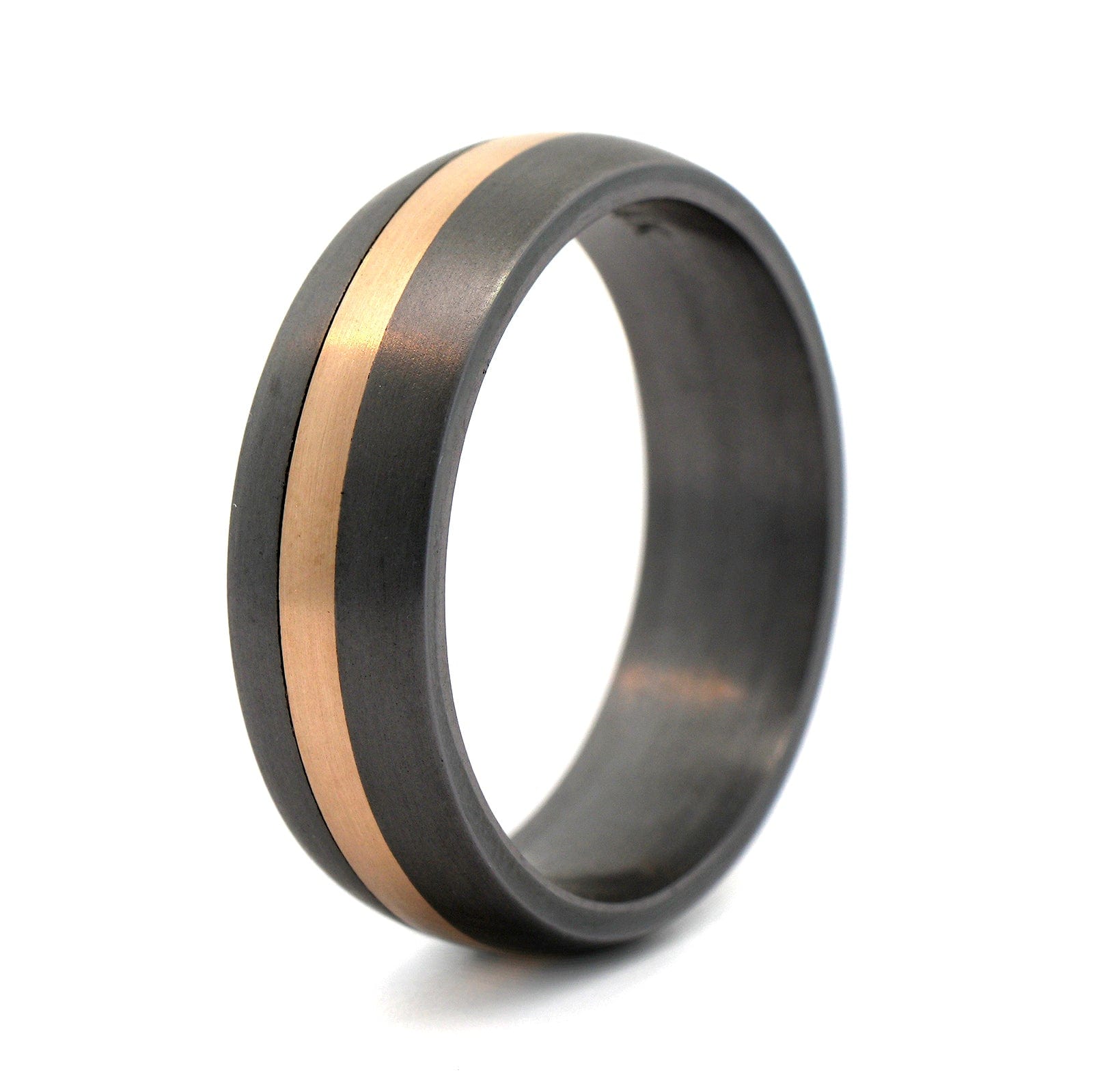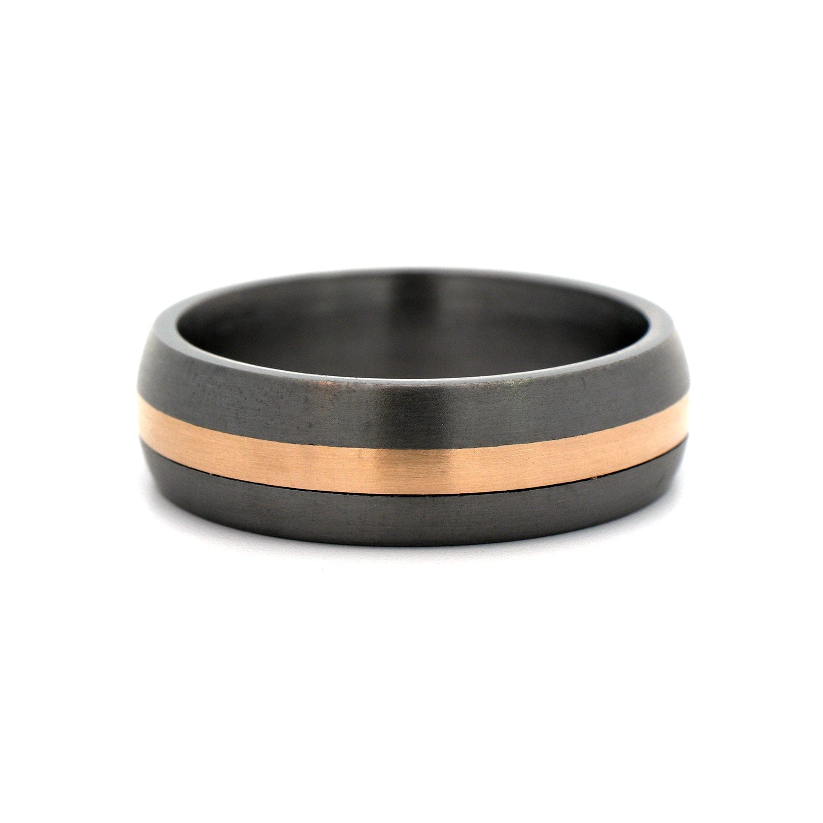 Tantalum band featuring a 14k yellow gold center with a brushed finish.