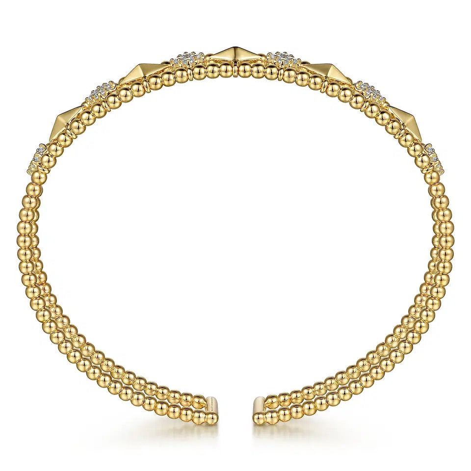 14K Yellow Gold Bujukan Diamond Cluster and Gold Pyramid Cuff Bracelet