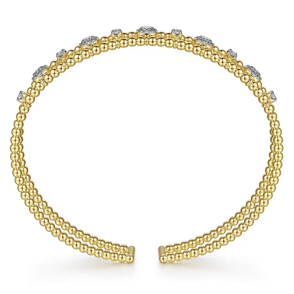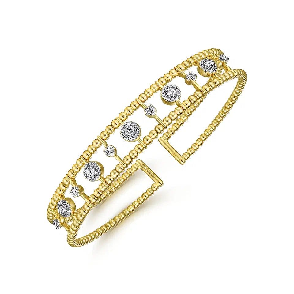 14K Yellow Gold Bujukan Diamond Cluster Cuff Bangle Bracelet