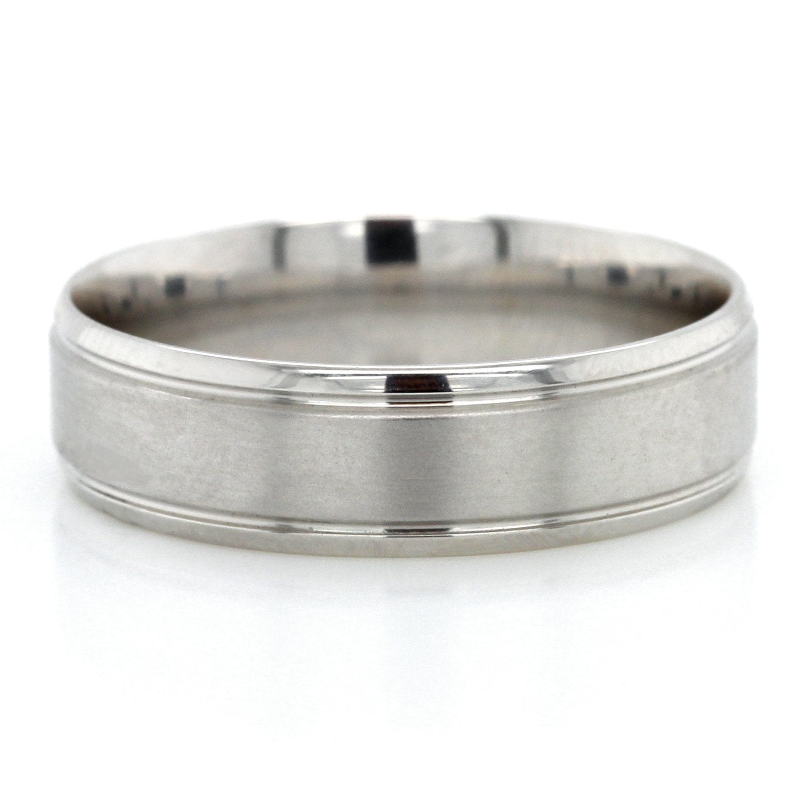 Platinum band with satin finish center and high polished step edges.