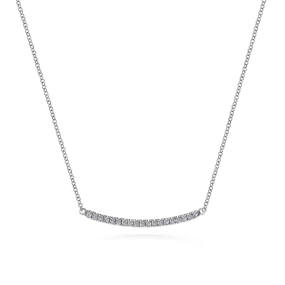 14K White Gold Diamond Pave Curved Bar Necklace