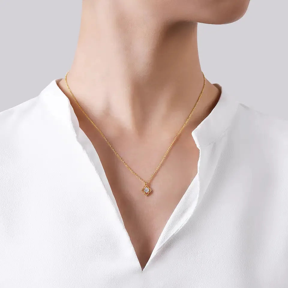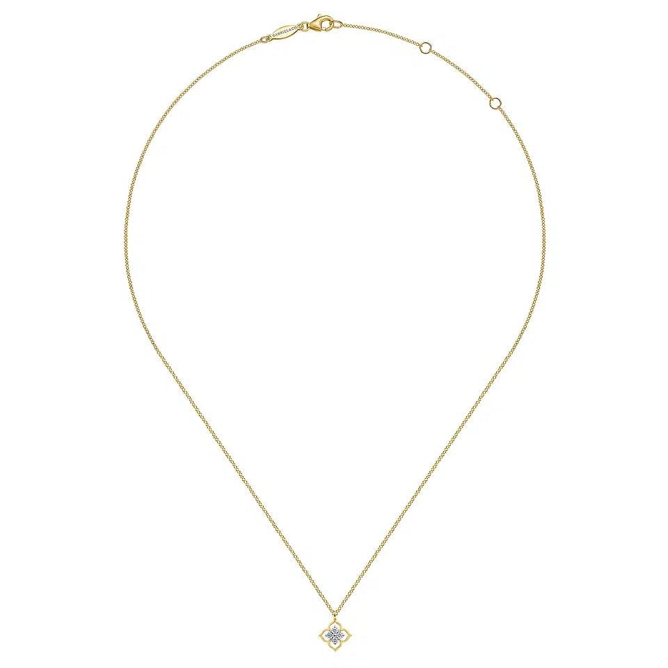 14K Yellow Gold Clover Diamond Pendant Necklace