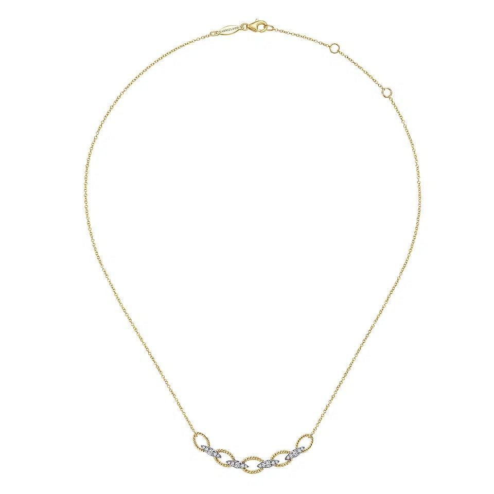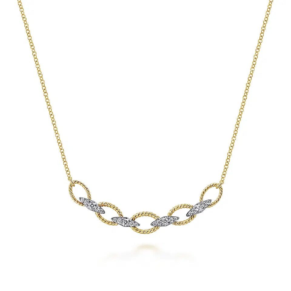 14K Yellow-White Gold Twisted Rope Oval Link Necklace with Diamond Connectors