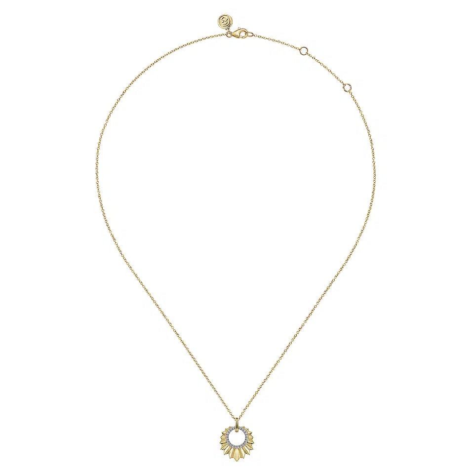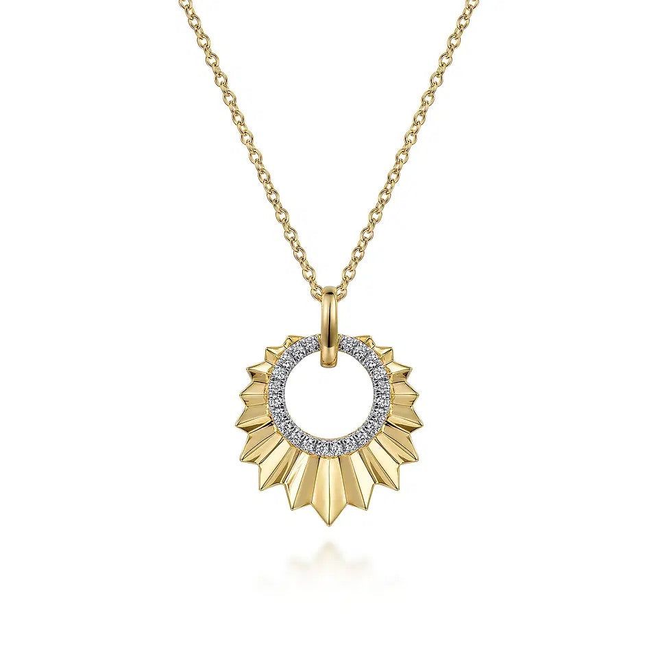 Diamond Cut - 14K Yellow Gold Diamond and Diamond Cut Texture Pendant Necklace