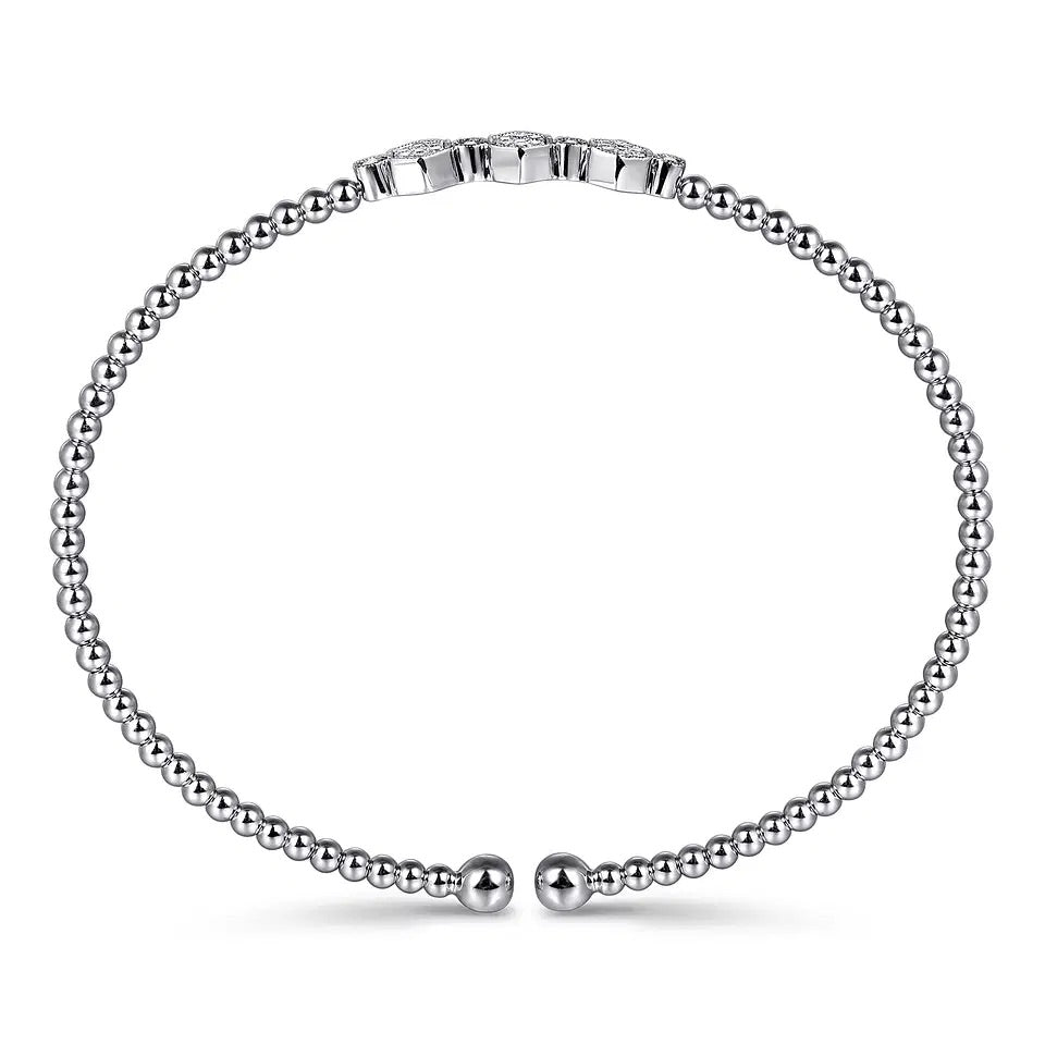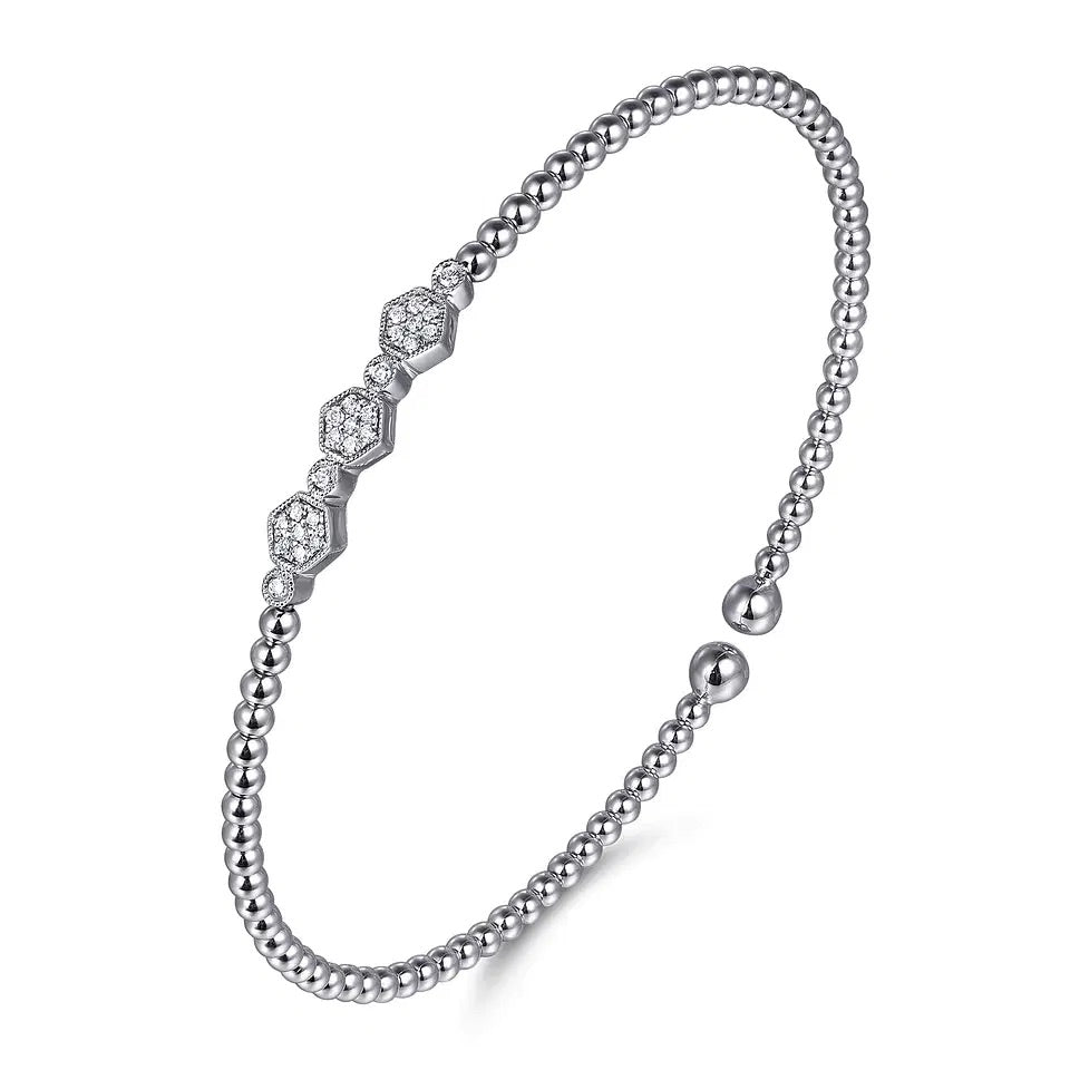 14K White Gold Bujukan Bead and Hexagon Cluster Diamond Bangle Bracelet