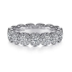 14K White Gold Round Diamond Halo Anniversary Band - 0.93 ct