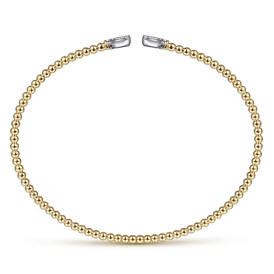 14K White-Yellow Gold Bujukan Diamond Hearts Split Bangle Bracelet