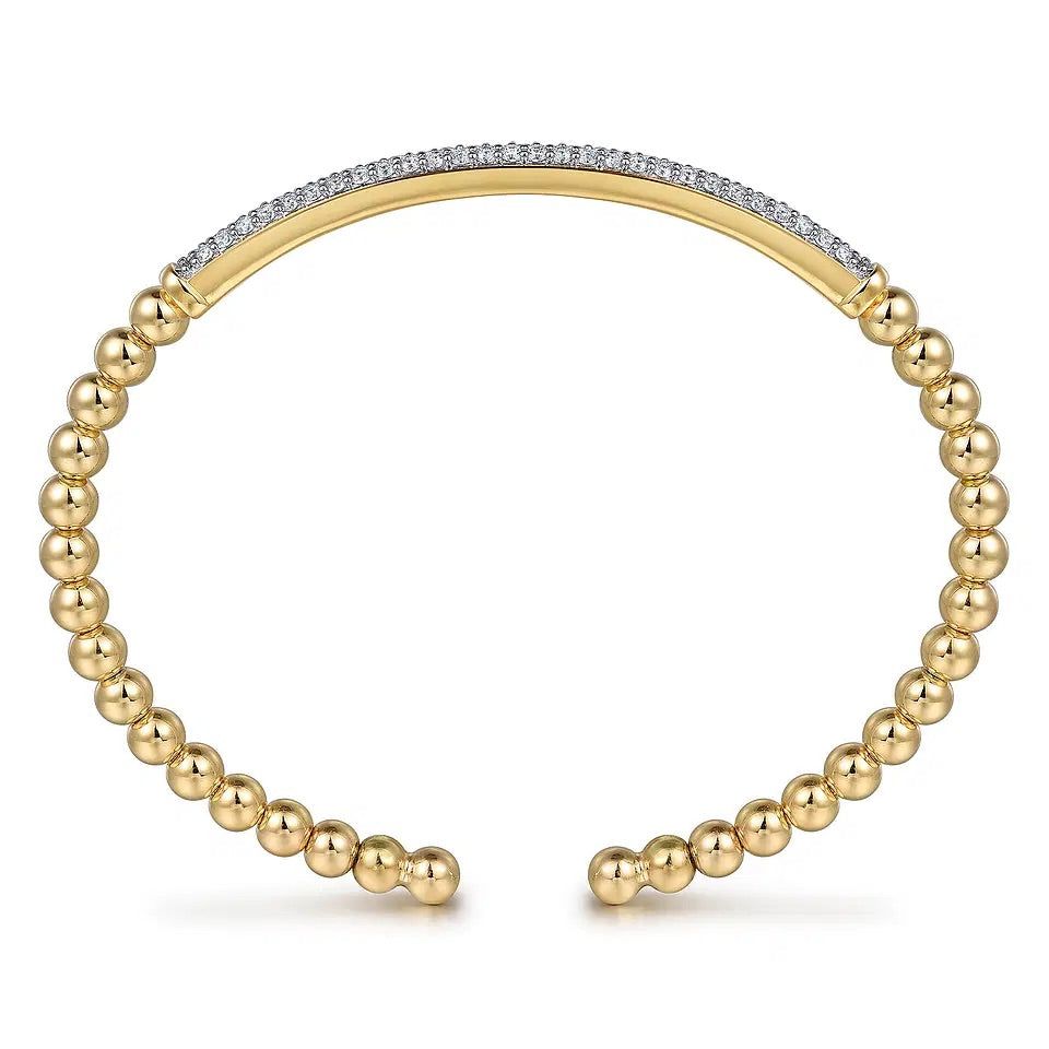 14K Yellow Gold DiamondPave Bar Bujukan Split Bangle Bracelet