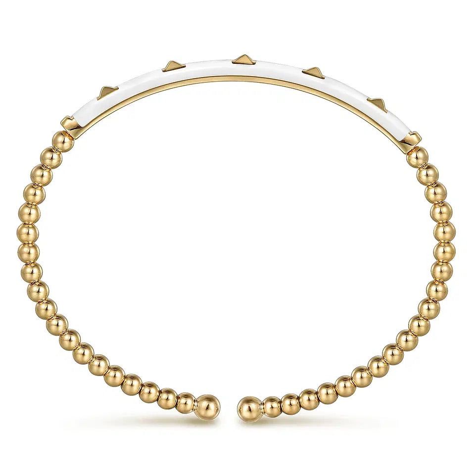 Enamel - 14K Yellow Gold Bujukan Beads and Pyramid Split Bangle with White Enamel Bracelet